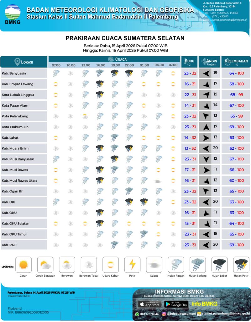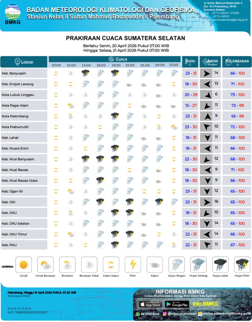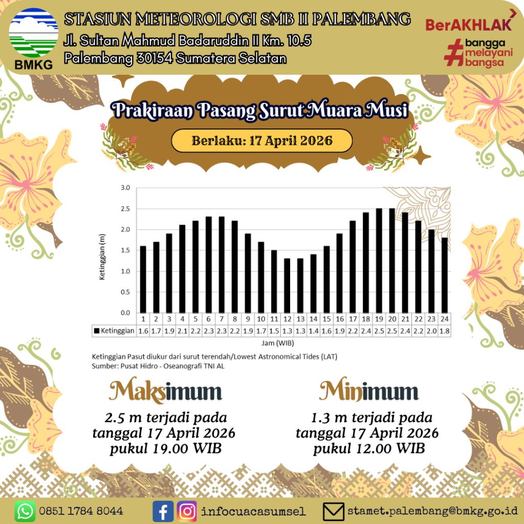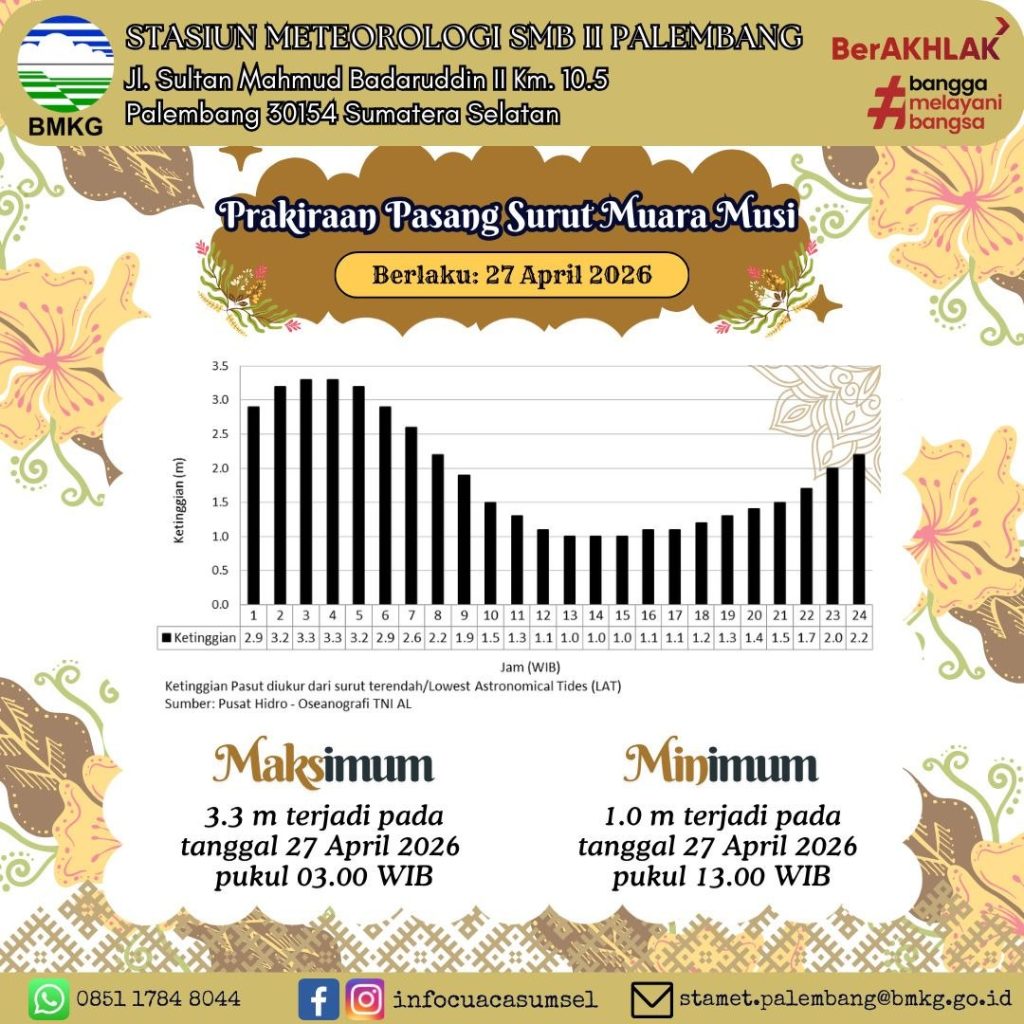 Palembang (05/03), Memasuki awal bulan Maret 2026 pada Bulan Ramadhan 1447 H, cuaca terasa makin panas di wilayah Sumatera Selatan. Berdasarkan pantauan BMKG, suhu udara di sejumlah wilayah, termasuk di…