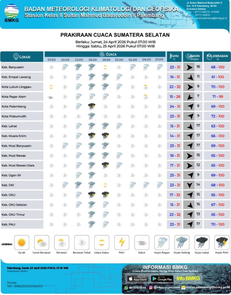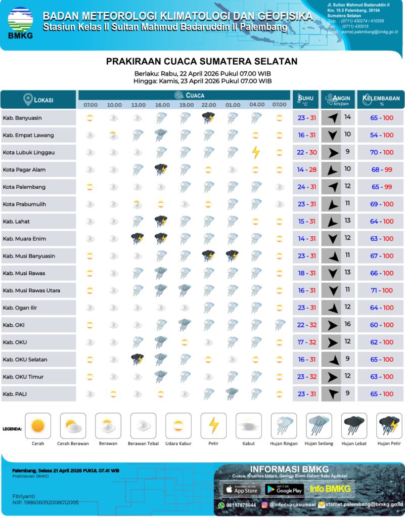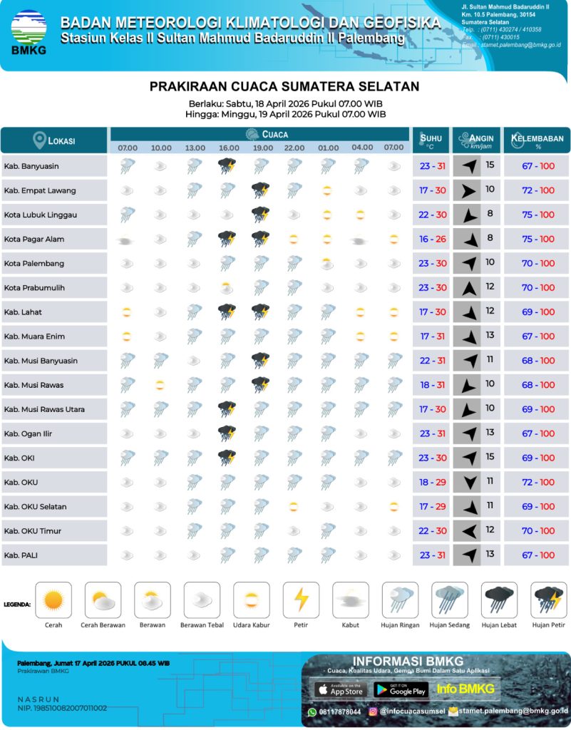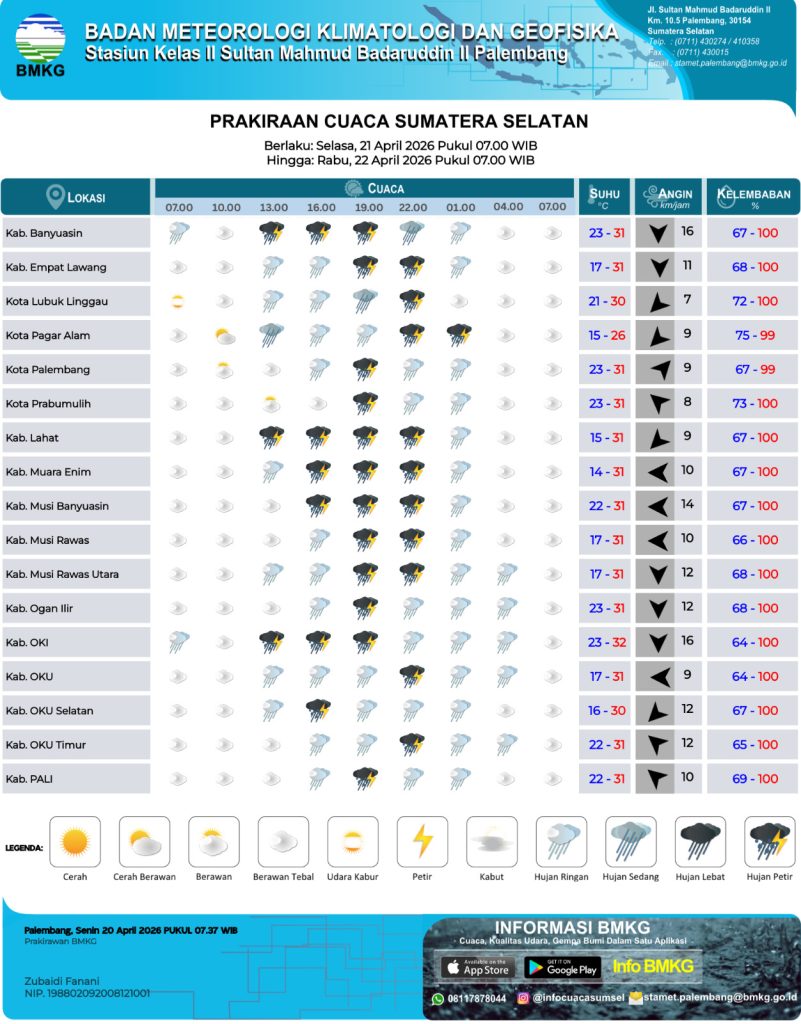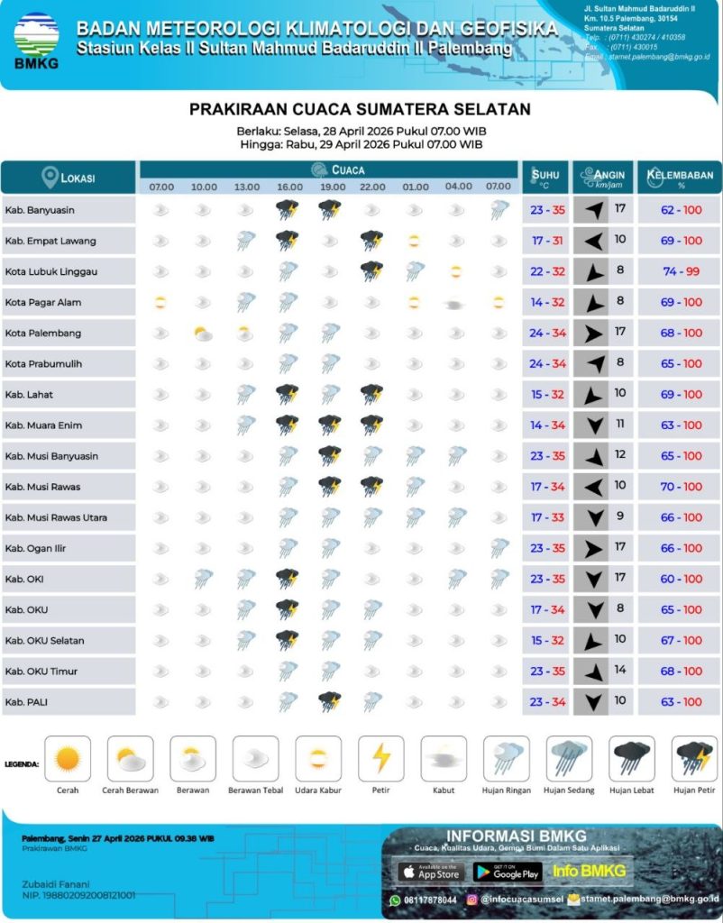 Palembang (05/03), Memasuki awal bulan Maret 2026 pada Bulan Ramadhan 1447 H, cuaca terasa makin panas di wilayah Sumatera Selatan. Berdasarkan pantauan BMKG, suhu udara di sejumlah wilayah, termasuk di…